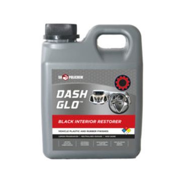 Black Interior Restorer. A water based acrylic coating used as a high shine for all black car interior finishing. It should not be used on leather, windows or car seats. Dash Glo can be applied on all plastic and rubber finishing. Dash Glo contains a citrus fragrance, leaving a long lasting fresh smell in the car. Dash Glo neutralises cigarette and other odours in the car. Dash Glo can also be used on tyres to give a matt black original finish.
